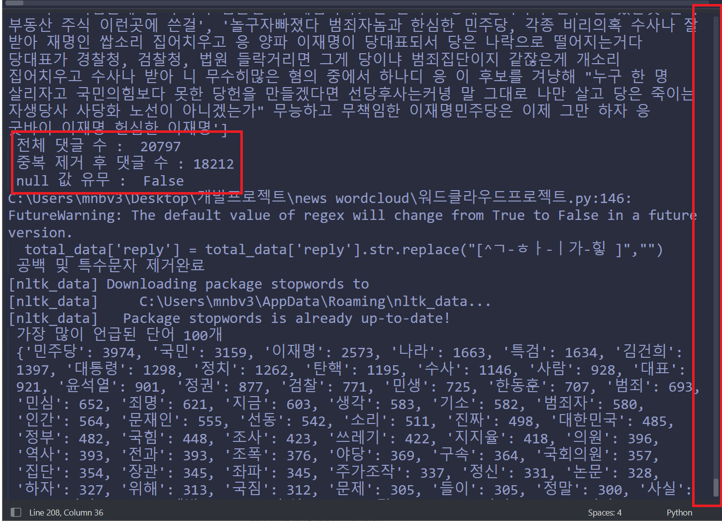 워드클라우드 부분은 따로 시간내어 작성하도록 하겠습니다.