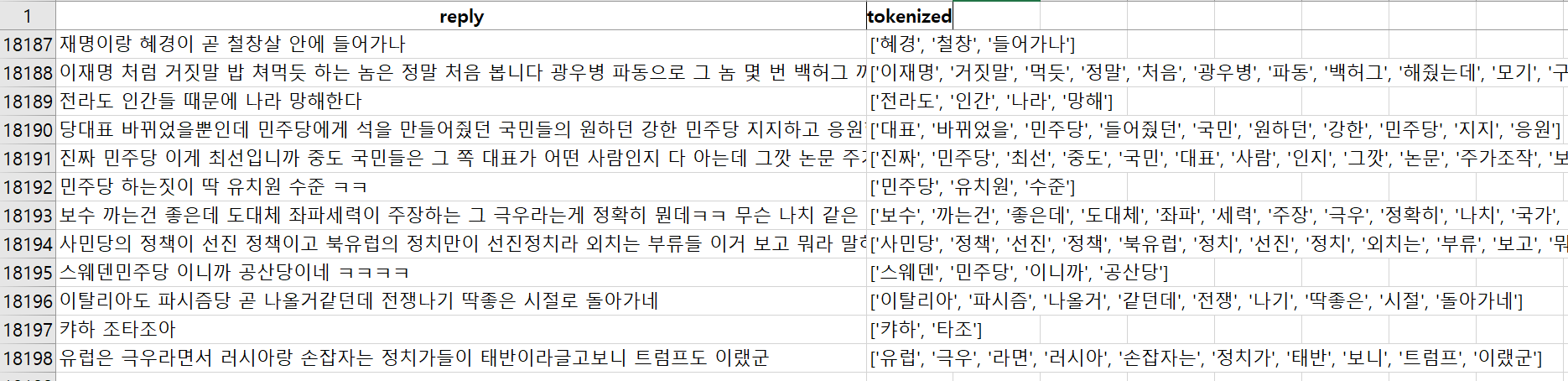 중복제거하고나니 무려 댓글이 18,198개 입니다.