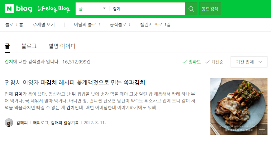 여기서 <키워드>는 예를 들어 네이버 블로그 사이트에서 '김치'라는 것을 검색했을 때 나오는 블로그입니다. 정확도 순으로 나오는 블로그들을 찾아 이웃추가를 하는 것입니다.