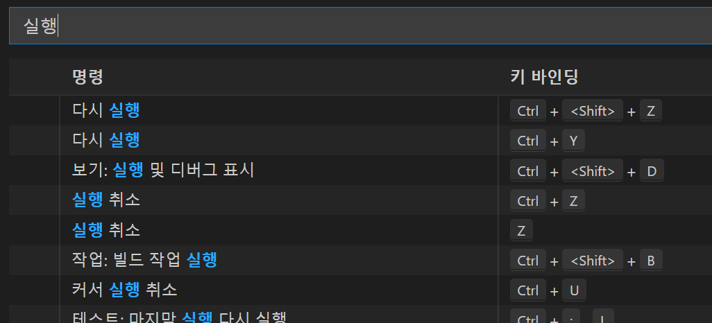바로 가기 키에서 하나하나 찾아볼 수 있지만, 이런식으로 키값을 넣어서 해당하는 것을 찾을 수 있습니다.