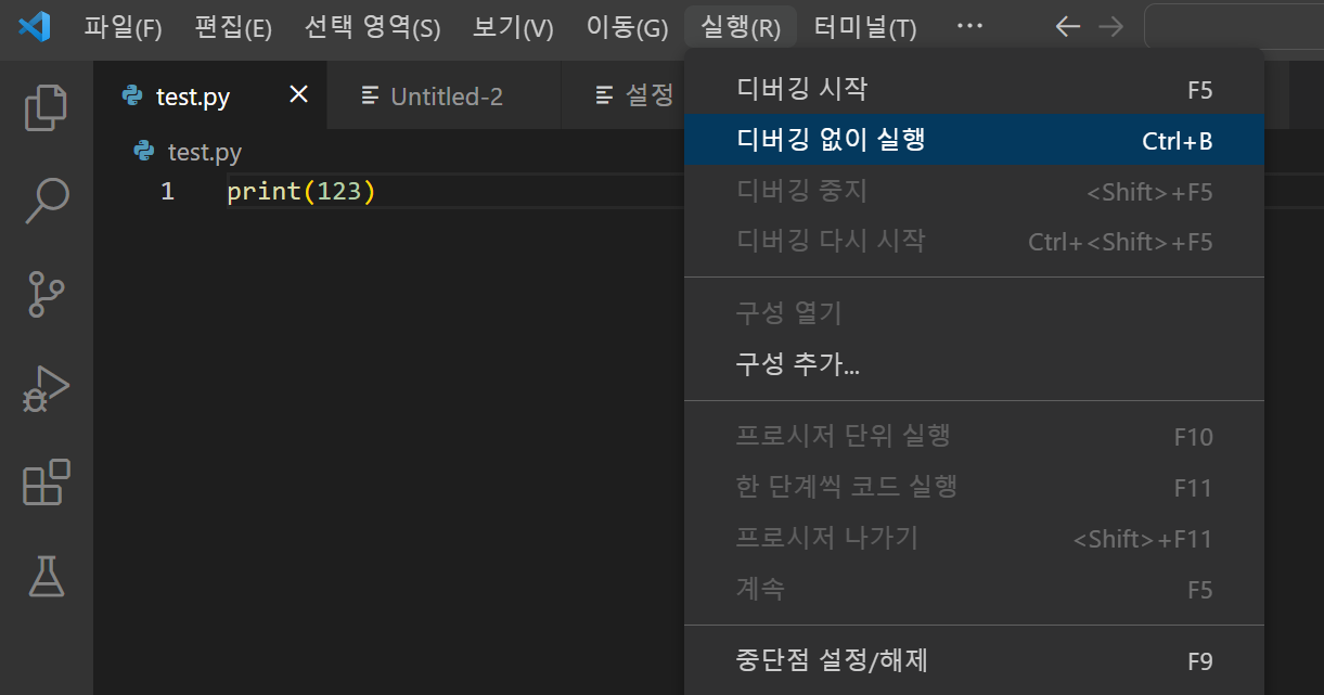 참고로 vscode는 실행 버튼이 Ctrl+F5 입니다.