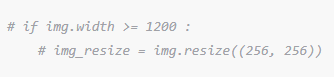 나 같은 경우 수집한 이미지 사이즈 가로, 세로가 각각 1200픽셀 넘으면 안 됐다.