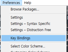 key Bindings 누르면 나오는 두개의 창 중 오른쪽에 설정한다.